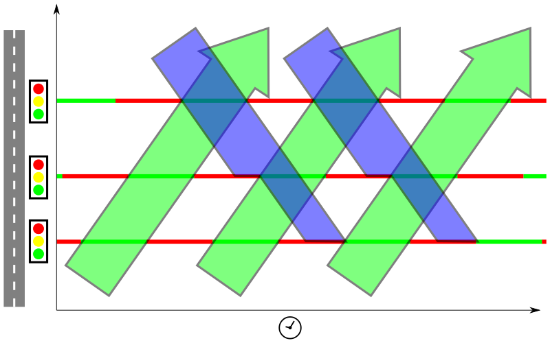 En una red sincronizada de sistemas de control de tránsito por semáforos, se pueden crear «olas verdes» para todo un cuadrante o incluso para toda la ciudad. Esto puede reducir significativamente los tiempos de viaje de los conductores y mejorar la eficiencia del tránsito.