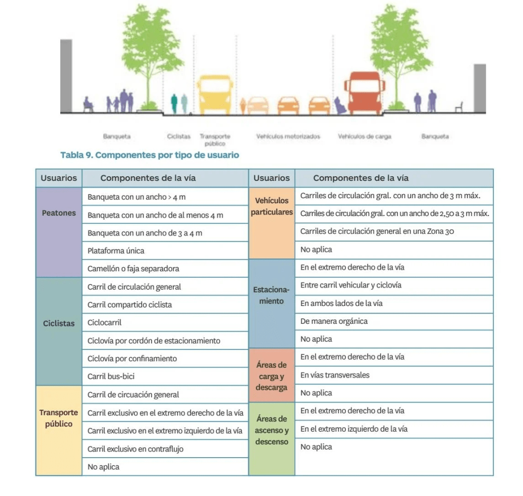 6. Lineamientos de Diseño Basados en los Usuarios – La solución de diseño o rediseño seleccionada debe adecuarse al alcance del proyecto y reflejar la nueva vocación de la calle o considerar las características y necesidades de todos los usuarios de la vía. Esto asegurará que la transformación de la calle sea inclusiva y beneficiosa para la comunidad en general.