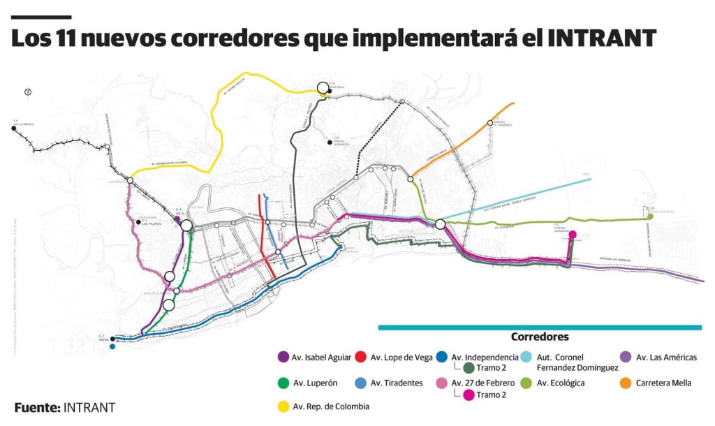 En el año 2019, el Instituto Nacional de Tránsito y Transporte Terrestre (Intrant) anunció un ambicioso proyecto que prometía transformar la movilidad urbana en el Gran Santo Domingo. La creación de corredores de autobuses en las principales rutas urbanas no solo buscaba eficientizar el transporte, sino también dignificarlo. Esta iniciativa se planteó como una solución para sacar de circulación carros de concho y buses chatarras que no solo congestionan las calles, sino que también contribuyen a la contaminación ambiental ademas de restar dignidad al medio de transporte, incentivando a su desuso y el malestar de sus usuarios.