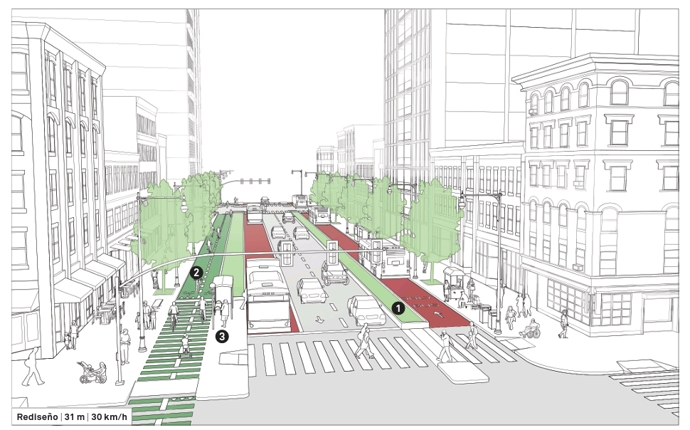 El diseño de calles para el transporte público no solo se trata de la funcionalidad del tráfico, sino también de la calidad de vida en las ciudades. El enfoque en el transporte público permite liberar espacio para áreas verdes y zonas peatonales, transformando nuestras calles en lugares más seguros y sostenibles. Estas mejoras no solo benefician a los usuarios de transporte público, sino que atraen a quienes eligen dónde vivir y establecer negocios según la disponibilidad de vecindarios servidos por el transporte público.