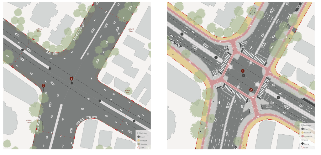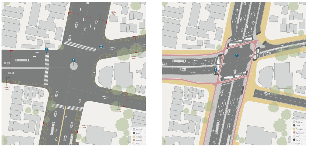 El rediseño de intersecciones comienza con la geometría. Calles mal alineadas, carriles desiguales y esquinas poco claras reducen la visibilidad y propician situaciones propensas a accidentes. Inspirados en las más modernas normas urbanísticas centrada en los ciudadanos, debemos abrazar estándares geométricos precisos que no solo mejoren la circulación vehicular, sino que también proporcionen un entorno más seguro para todos los usuarios de la vía.