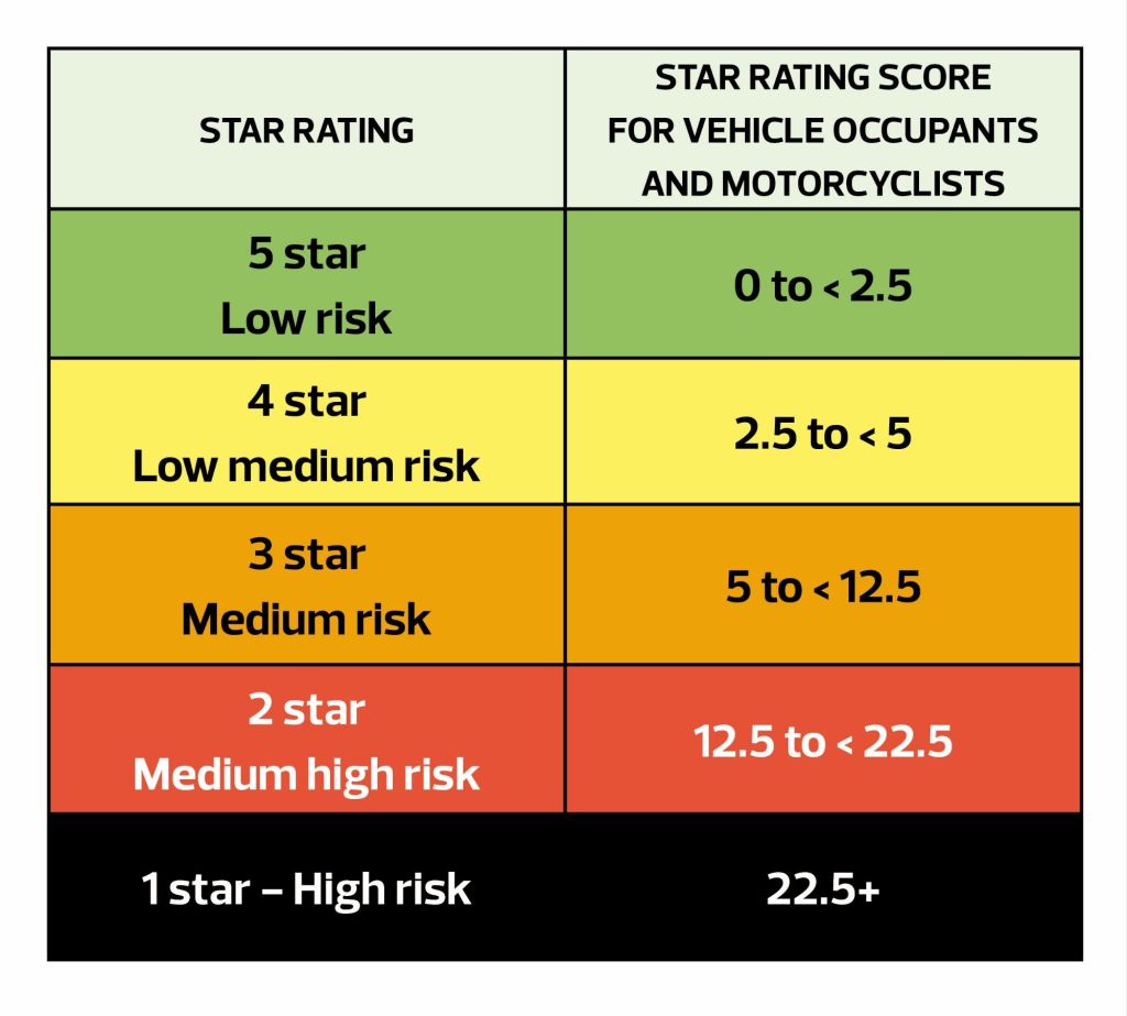 El iRAP o Programa Internacional de Evaluación de Carreteras es un sistema de calificación de carreteras que evalúa su seguridad y asigna una calificación en una escala de una a cinco estrellas. Esta calificación se basa en factores que determinan el nivel de seguridad que ofrece una carretera, desde el diseño de sus intersecciones hasta la presencia de infraestructura adecuada para proteger a peatones y ciclistas. Una carretera de cinco estrellas se considera ideal y extremadamente segura, mientras que una de una o dos estrellas podría representar mayores riesgos para los usuarios.