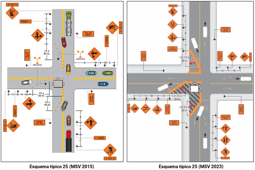- Carril alternado con paleteros o semáforos portátiles.